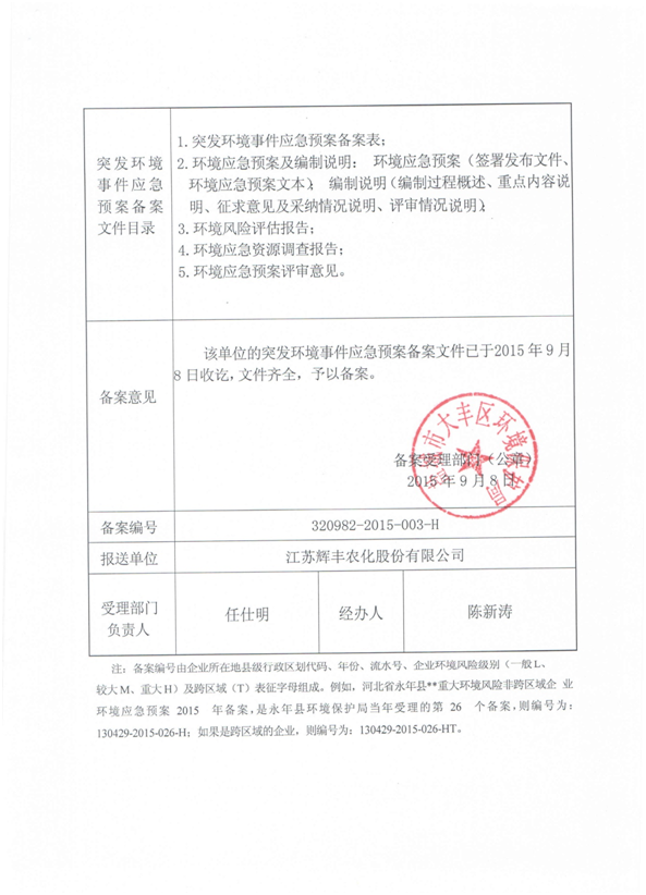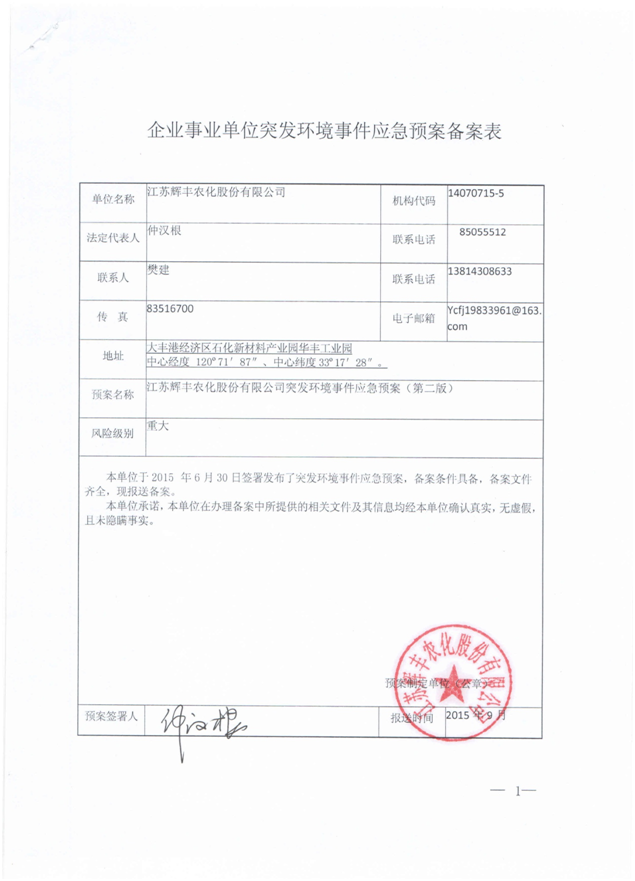 江蘇輝豐農(nóng)化股份有限公司環(huán)保信息公開!