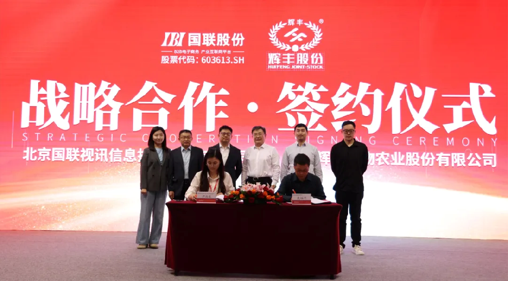 交流洽談后,國(guó)聯(lián)股份副總裁、肥多多CEO尹海鳳與輝豐股份副董事長(zhǎng)裴柏平代表雙方簽訂了戰(zhàn)略合作協(xié)議。